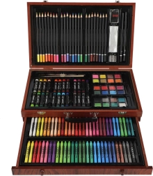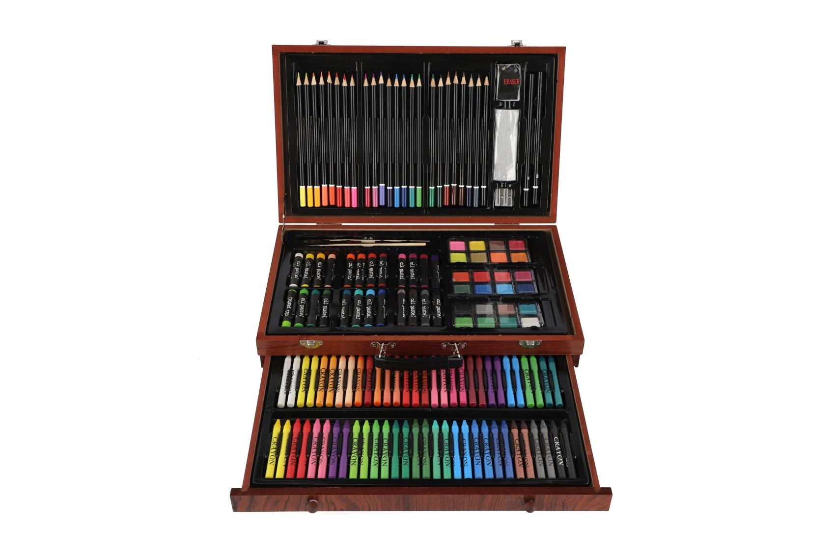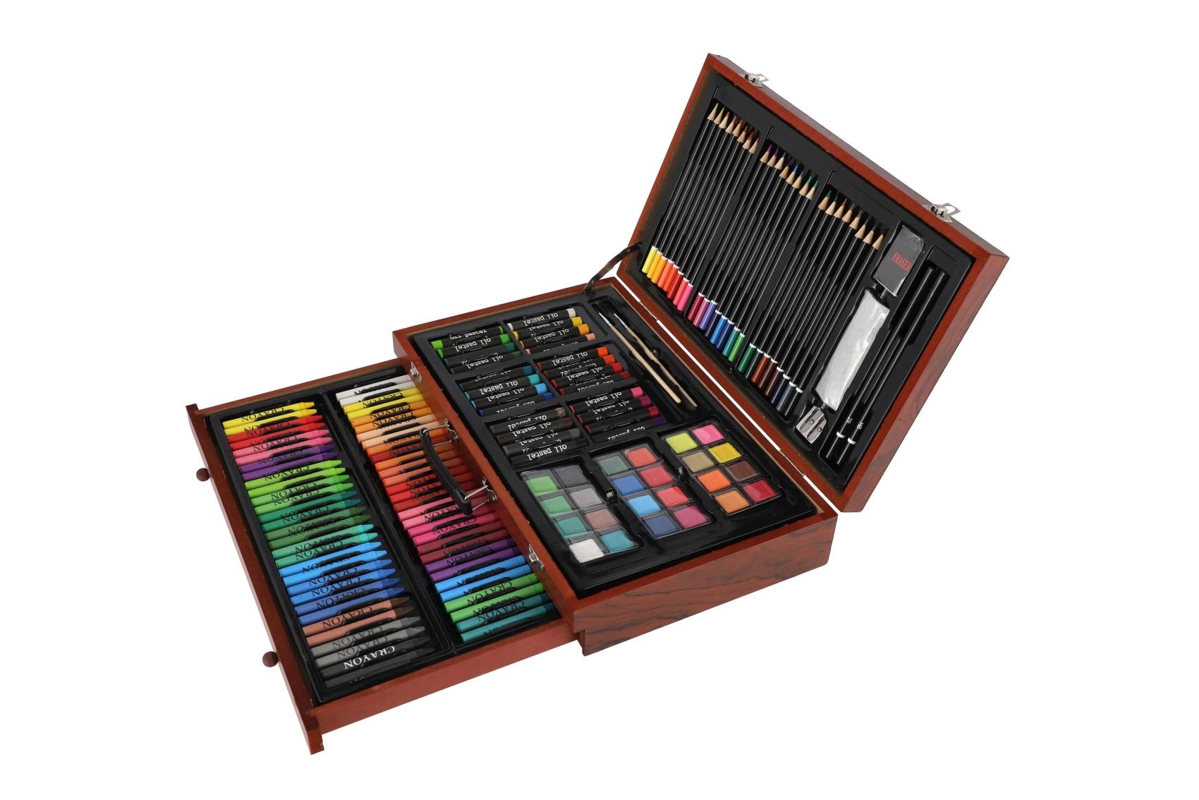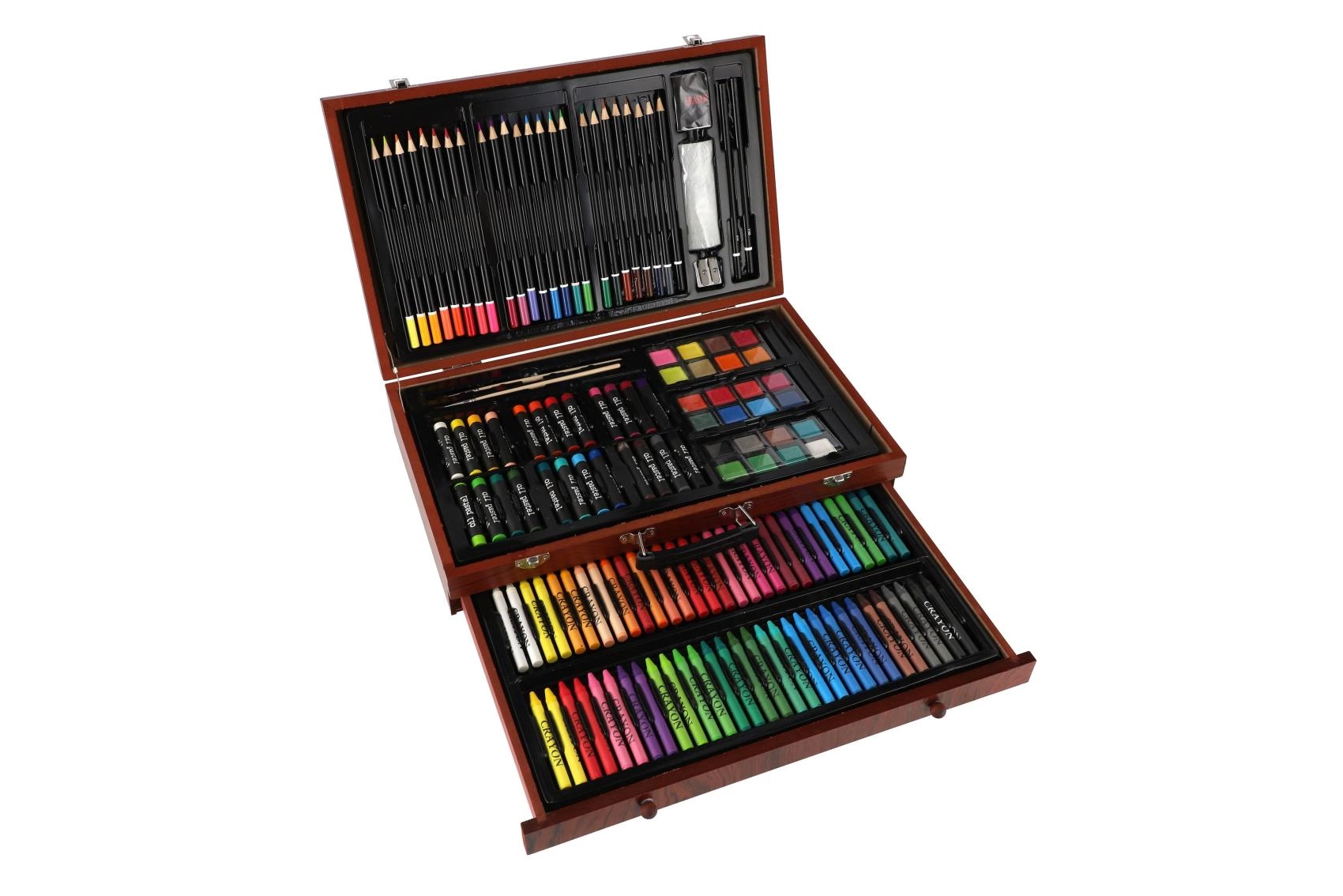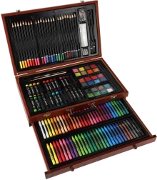 Αυτό το πλούσιο εικαστικό σετ είναι εξαιρετική επιλογή για αρχάριους και προχωρημένους δημιουργούς που θέλουν όλα τα απαραίτητα σε ένα μέρος. Η συμπαγής ξύλινη βαλίτσα εξασφαλίζει οργανωμένη αποθήκευση και εύκολη μεταφορά, ώστε να δημιουργείτε στο σπίτι, στο σχολείο ή εν κινήσει.