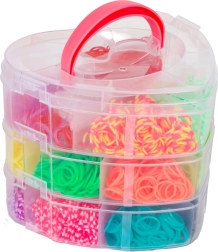 Δημιουργικό σετ για την κατασκευή δικών σου βραχιολιών και αξεσουάρ ιδανικό για κάθε μικρό σχεδιαστή που θέλει να αναπτύξει τις δεξιότητές του. Περιλαμβάνει πάνω από 2700 πολύχρωμα λαστιχάκια και εργαλεία για πλέξιμο.