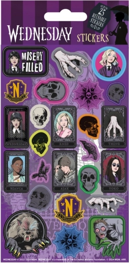 Κάθε φύλλο αυτοκόλλητων περιέχει 25 μοναδικά σχέδια εμπνευσμένα από τη δημοφιλή σειρά Wednesday. Είτε είστε θαυμαστής της σειράς είτε αναζητάτε έναν πρωτότυπο τρόπο για να διακοσμήσετε τετράδια, laptop ή άλλες επιφάνειες, αυτά τα αυτοκόλλητα είναι η ιδανική επιλογή. Χάρη στην επανάληψη χρήσης μπορείτε να αλλάζετε τη θέση τους ανάλογα με τη διάθεσή σας. Το μέγεθός τους επιτρέπει εύκολη εφαρμογή και εξαιρετική εμφάνιση σε κάθε επιφάνεια.