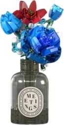 Αυτό το σετ κατασκευών προσφέρει έναν συνδυασμό χρωματικής κομψότητας και δημιουργικής διασκέδασης. Το μοντέλο σε ψυχρούς τόνους του μπλε και του κόκκινου τραβά το βλέμμα με την ακρίβεια της κατασκευής, τις αντιθέσεις των χρωμάτων και το αισθητικό του σχήμα. Τα άνθη σε αυτή τη σύνθεση περιλαμβάνουν μπλε τριαντάφυλλα, κόκκινες τουλίπες και μικρές λεπτομέρειες που μιμούνται σταχύδια ή μούρα.