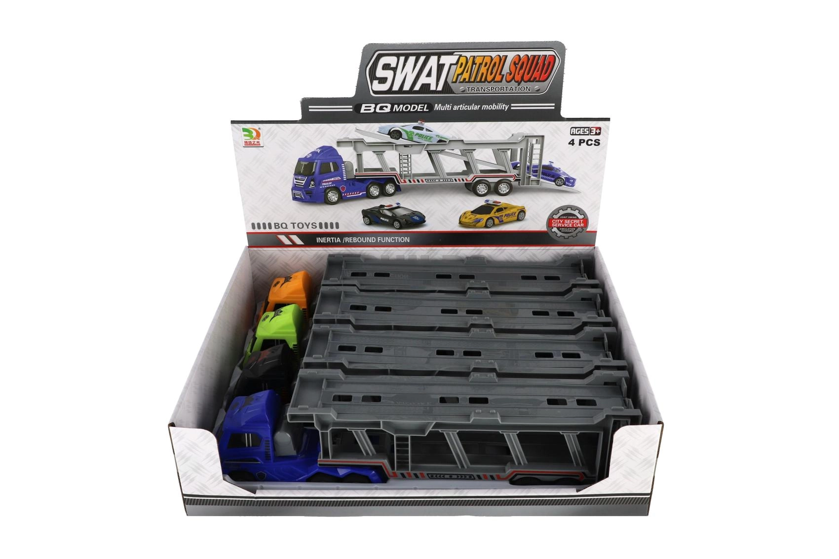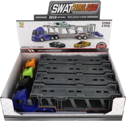 Ξεκινήστε μια αστυνομική αποστολή με αυτόν τον υπέροχο φορτηγό-μεταφορέα. Αυτό το παιχνίδι διαθέτει διώροφο αναδιπλούμενο συρόμενο μέρος, που εξασφαλίζει εξαιρετικό παιχνίδι και άφθονο χώρο για τα οχήματά σας.
