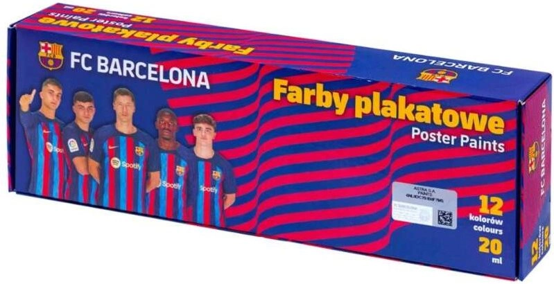 Σετ τέμπερες ASTRA με θέμα FC BARCELONA προσφέρει 12×20 ml ζωντανές αποχρώσεις σε πλαστικά δοχεία με καπάκι. Οι μπογιές είναι υδατοδιαλυτές, αναμειγνύονται και καθαρίζονται εύκολα, έχουν υψηλή καλυπτικότητα και μετά το στέγνωμα δίνουν ματ επιφάνεια – ιδανικές για σχολικές και οικιακές δημιουργίες σε χαρτί.