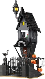 Το θεματικό σετ κατασκευής του στοιχειωμένου σπιτιού HALLOWEEN συνδυάζει διασκεδαστική συναρμολόγηση με σκοτεινή, συναρπαστική αισθητική. Περιλαμβάνει ψηλό πυργίσκο, φράχτη με πύλη, κολοκύθες, νυχτερίδες και φανάρι πάνω σε κολόνα – όλα σε έντονες, σκούρες αντιθέσεις, ώστε το μοντέλο να ξεχωρίζει στο ράφι ή ανάμεσα στις εορταστικές διακοσμήσεις.