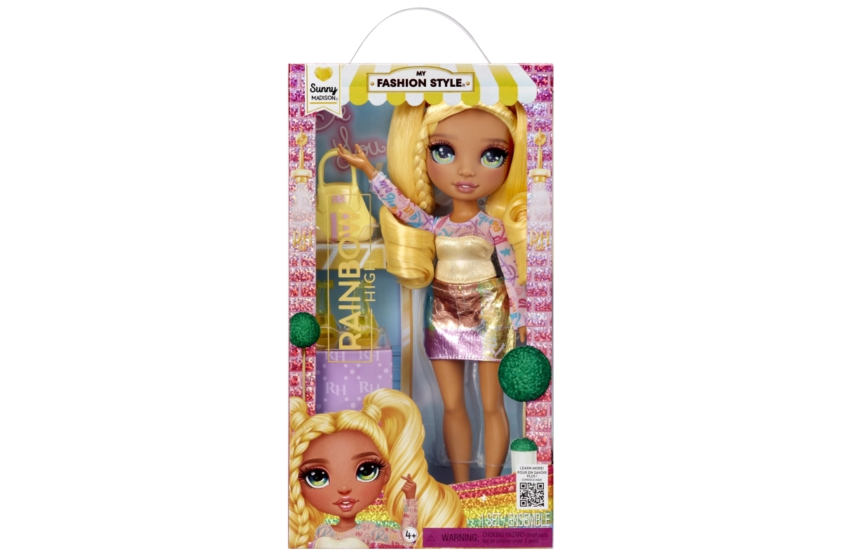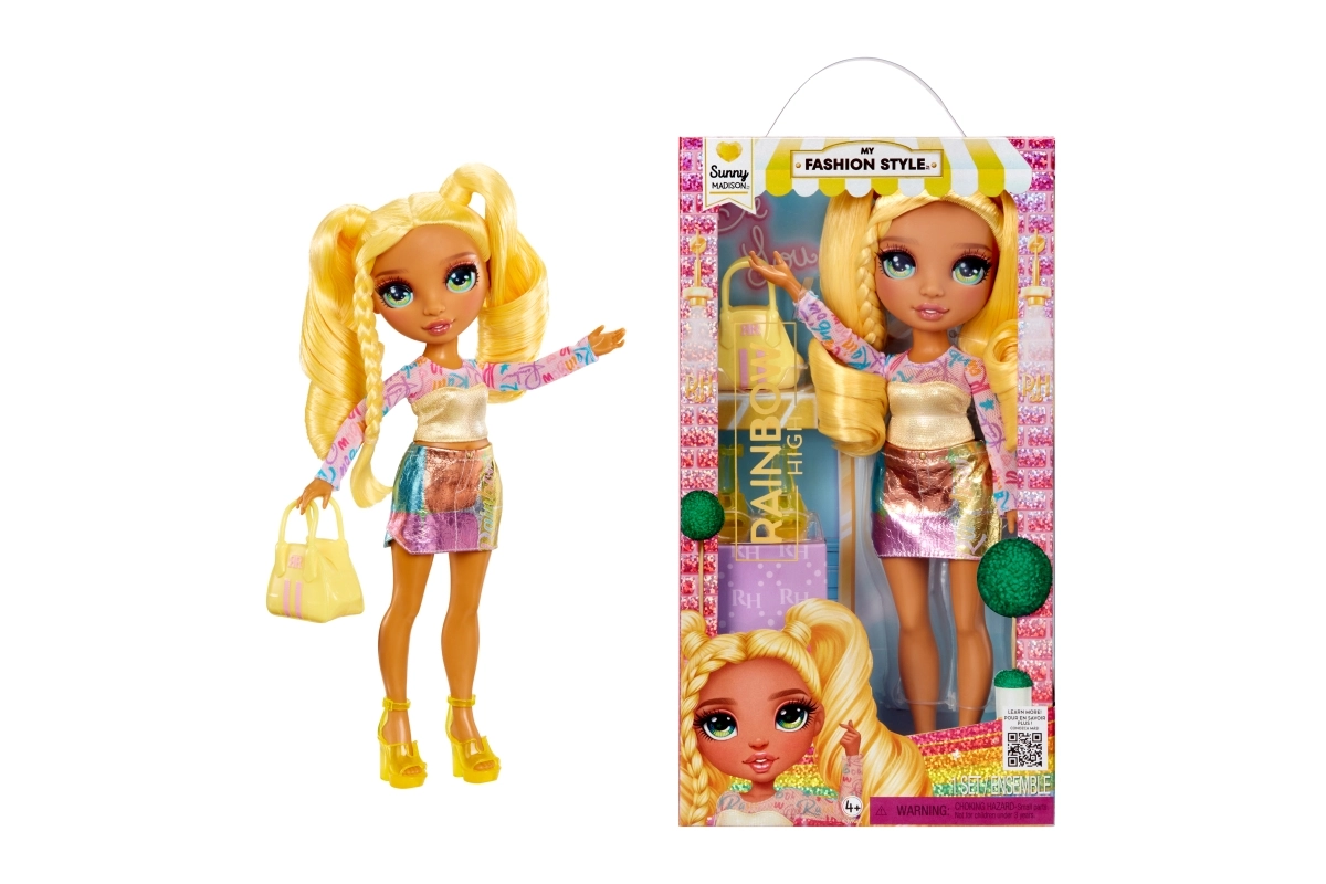 Γνωρίστε τη Sunny από τη συλλογή Rainbow High Fashion Style – ένα είδωλο στιλ που λάμπει από την κορυφή ως τα νύχια. Διαθέτει μακριά, εύκολα χτενιζόμενα κίτρινα μαλλιά, λεπτομερή γυάλινα μάτια και απαλές βλεφαρίδες. Περιλαμβάνονται κομμάτια για στιλάτα outfit, ταιριαστά παπούτσια και τσάντα. Χάρη στις αρθρώσεις για εύκολη πόζα είναι ιδανική για styling, παιχνίδι ρόλων και συλλογή. Ηλικία 3+.
