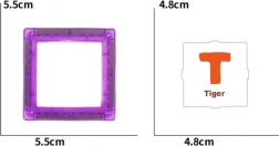 - 8 μπλε τετράγωνα, 7 κόκκινα τετράγωνα, 9 γκρι τετράγωνα, 7 μωβ τετράγωνα, 9 πράσινα τετράγωνα, 30 εκπαιδευτικές κάρτες με γράμματα