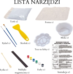 - Πλήρες πακέτο – καλούπια, γύψος, χρώματα, πινέλα και εργαλεία, συμπεριλαμβανομένου μπολ ανάμειξης.