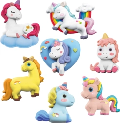 Με αυτό το σετ τα παιδιά μπορούν εύκολα να χύσουν τους δικούς τους μονόκερους, να τους αφήσουν να στεγνώσουν και έπειτα να τους χρωματίσουν όπως φαντάζονται. Τα διάφορα σχήματα και πόζες των φιγούρων επιτρέπουν τη δημιουργία μιας μοναδικής συλλογής που θα διακοσμήσει το παιδικό δωμάτιο. Το πλήρες σετ αξεσουάρ εξασφαλίζει ότι όλα γίνονται άνετα και με ασφάλεια στο σπίτι.