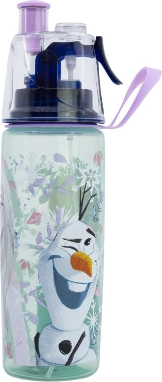 Πρακτικό παιδικό μπουκάλι νερού χωρητικότητας 575 ml με αγαπημένο μοτίβο FROZEN, συνδυάζει άνετο πόσιμο από επιστόμιο και δροσιστικό ψεκαστήρα νερού. Ιδανικό για σχολείο, άθληση και εκδρομές, κατασκευασμένο από ασφαλές υλικό χωρίς BPA.