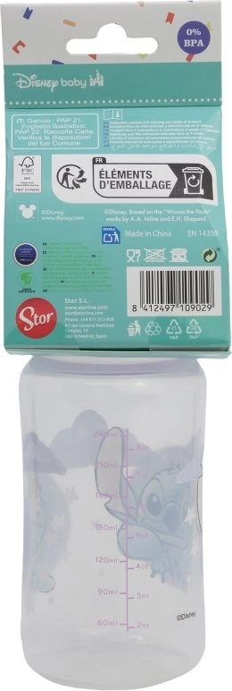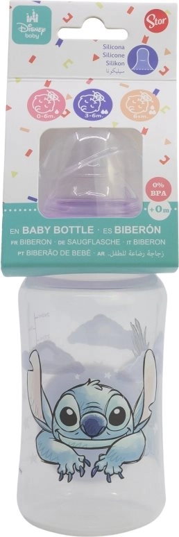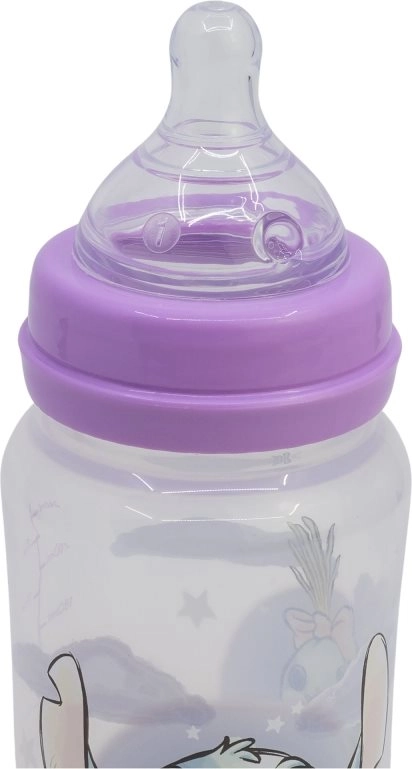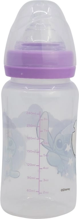 Πρακτικό αντικολικό μπιμπερό με σχέδιο Lilo και Stitch για άνετο τάισμα νεογέννητων. Προσφέρει χωρητικότητα 240 ml, σιλικόνη θηλή για φυσικό ρούφηγμα και ενσωματωμένο σύστημα κατά των κολικών που μειώνει τον κίνδυνο δυσφορίας. Είναι χωρίς BPA και πληροί το πρότυπο EN 14350.