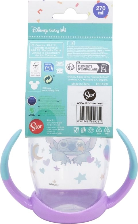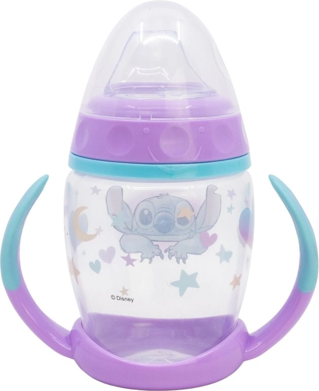 Η κούπα με χερούλια και σιλικόνινο ρύγχος STITCH 270 ml βοηθά τα παιδιά να μεταβούν άνετα και με ασφάλεια από το μπιμπερό στην κούπα. Το μαλακό ρύγχος είναι φιλικό προς τα ευαίσθητα ούλα και τα δοντάκια, ενώ οι αντιολισθητικές λαβές εξασφαλίζουν σταθερό κράτημα ακόμη και για μικρά χεράκια.