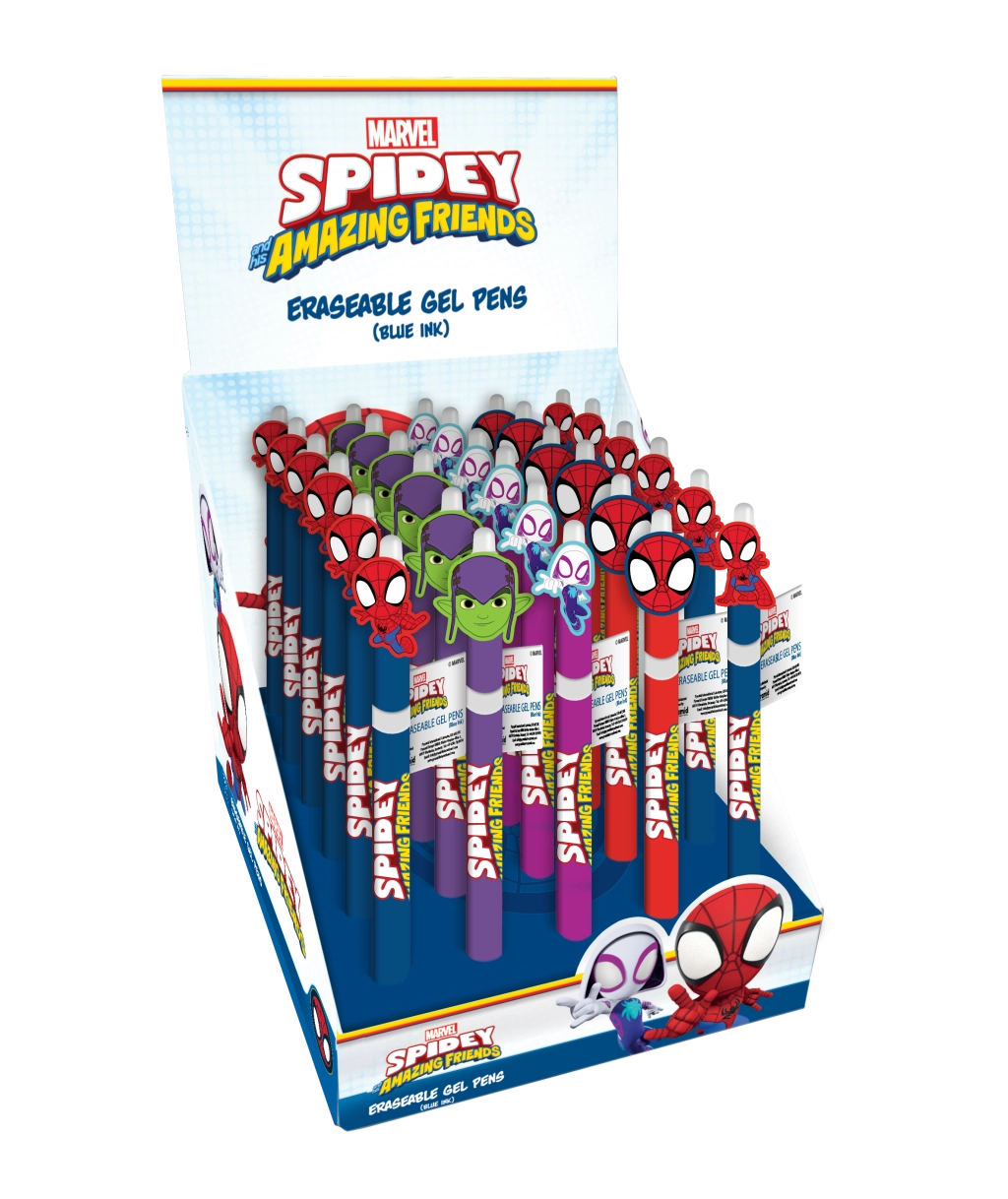 Το σβηστό τζελ στυλό Spidey συνδυάζει ομαλή γραφή τζελ με πρακτική δυνατότητα διόρθωσης. Χάρη στη ενσωματωμένη γόμα στο άκρο, αφαιρείτε εύκολα μικρά λάθη χωρίς να καταστρέφετε το χαρτί. Το στιλάτο, επίσημα αδειοδοτημένο μοτίβο θα ενθουσιάσει όλους τους φίλους του SPIDEY και θα δώσει στυλ στις σχολικές και επαγγελματικές σημειώσεις.