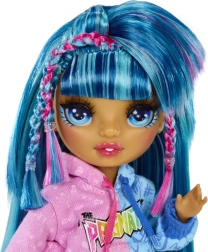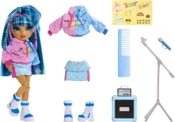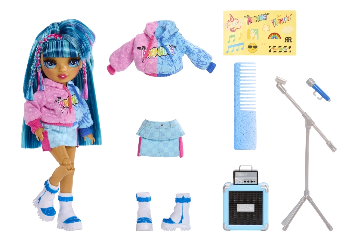 Η κούκλα Skyler Bradshaw από τη συλλογή Rainbow High Jr. High λάμπει στο εμβληματικό μπλε και είναι έτοιμη για τη σκηνή. Χάρη στο πλήρως αρθρωτό σώμα τη ρυθμίζεις εύκολα σε εντυπωσιακές πόζες, και με το μικρόφωνο και τον μίνι ενισχυτή στήνεις ένα κανονικό show. Το προσεγμένο outfit, τα μακριά μπλε μαλλιά και τα θεματικά αξεσουάρ κάνουν αυτή την κούκλα ιδανική τόσο για παιχνίδι όσο και για έκθεση.