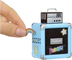 Στη συσκευασία θα βρεις ό,τι χρειάζεσαι για άμεση μουσική διασκέδαση – διμερές μοδάτο σετ, στιλάτα παπούτσια, μικρόφωνο με βάση, μίνι ενισχυτή, φύλλο αυτοκόλλητων για διακόσμηση και χτένα για το styling των μαλλιών. Συνδύασε αξεσουάρ, δημιούργησε ιστορίες και μάζεψε και τα υπόλοιπα μέλη της μπάντας για να ολοκληρώσεις τη σκηνή σου.