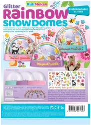 Στη συσκευασία θα βρείτε όλα όσα χρειάζεστε για την κατασκευή έως και τριών χιονομπάλων – από διάφανους θόλους και βάσεις, μέχρι πολύχρωμα γκλίτερ, αυτοκόλλητα και κατανοητό οδηγό. Χάρη στην απλή διαδικασία, το project είναι κατάλληλο και για αρχάριους και ιδανικό ως δώρο ή διακόσμηση παιδικού δωματίου.