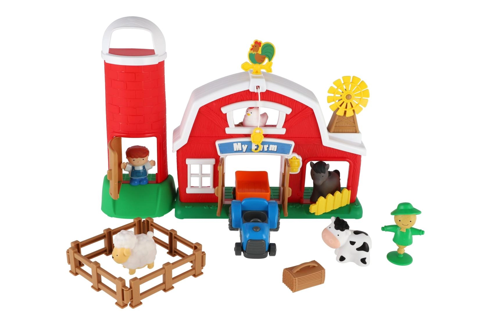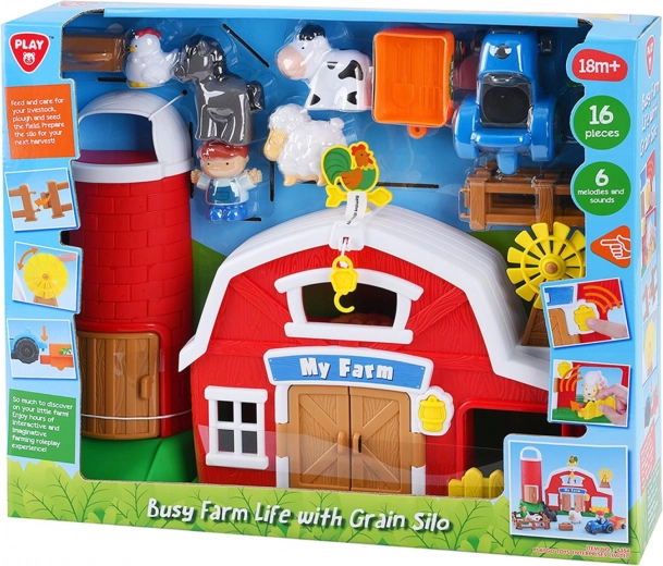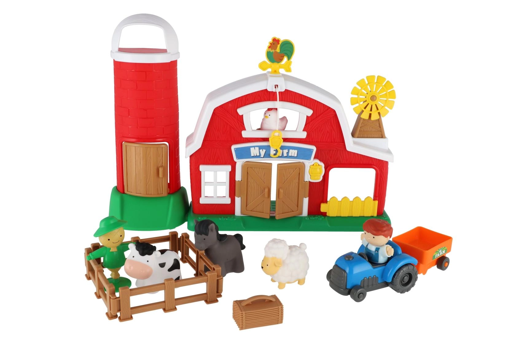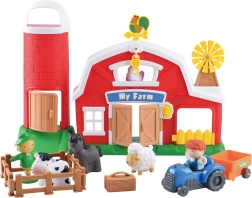Ανακαλύψτε τη χαρά της υπαίθρου με αυτήν την πολύχρωμη φάρμα για τους μικρούς. Η μεγάλη αποθήκη με σιλό, το τρακτέρ, τα ζωάκια και ο αγρότης προσκαλούν σε ατελείωτο παιχνίδι ρόλων, ενώ με την ενεργοποίηση ακούγονται ρεαλιστικοί ήχοι που ζωντανεύουν το παιχνίδι. Χάρη στην ανθεκτική πλαστική κατασκευή και τις στρογγυλεμένες άκρες το σετ είναι ασφαλές και κατάλληλο από 18 μηνών, αναπτύσσοντας τη φαντασία και τη λεπτή κινητικότητα.