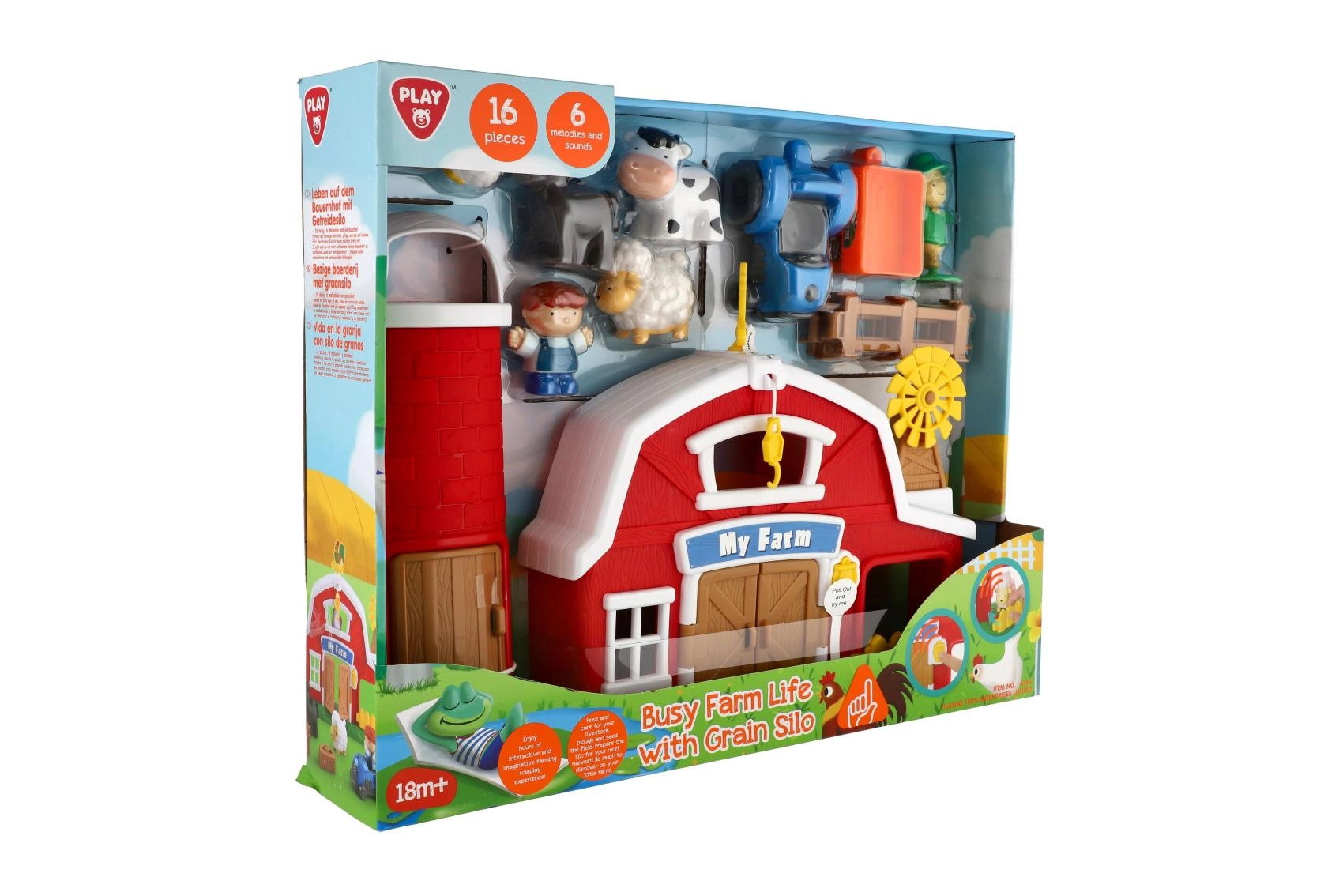 Αυτή η παιχνιδιάρικη φάρμα φέρνει στα παιδιά τον κόσμο της υπαίθρου κατευθείαν στο παιδικό δωμάτιο. Η πολύχρωμη αποθήκη με σιλό για σιτηρά, ανοιγόμενα μέρη και πληθώρα αξεσουάρ εμπνέει δημιουργική αφήγηση ιστοριών. Με την ενεργοποίηση ακούγονται ήχοι φάρμας που ενισχύουν την αισθητηριακή αντίληψη και βυθίζουν τα παιδιά στο παιχνίδι.