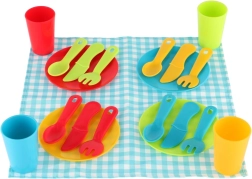 Απολαύστε ένα παιχνιδιάρικο γεύμα οπουδήποτε με αυτό το πολύχρωμο σετ σε πρακτικό καλαθάκι. Περιλαμβάνει ό,τι χρειάζεται για σερβίρισμα για τέσσερα άτομα – πιάτα, ποτηράκια και μαχαιροπίρουνα – καθώς και κουβερτούλα. Ελαφριά και ασφαλής κατασκευή, ιδανική για παιδιά από 2 ετών, που αναπτύσσει τη φαντασία και το κοινωνικό παιχνίδι στο σπίτι, στον κήπο ή έξω.