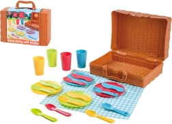 Αυτό το παιδικό σετ πικνίκ με καλαθάκι προσφέρει στους μικρούς σεφ όλα όσα χρειάζονται για το τέλειο πικνίκ. Στο ανθεκτικό πλαστικό καλαθάκι θα βρείτε πιάτα, ποτηράκια και σετ μαχαιροπίρουνων για τέσσερα άτομα, καθώς και μια κομψή καρό κουβερτούλα. Το σετ είναι από ελαφρύ, εύκολα πλενόμενο πλαστικό, ιδανικό για καθημερινό παιχνίδι.