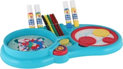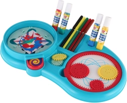 Αυτό το δημιουργικό σετ ζωγραφικής συνδυάζει τις αγαπημένες τεχνικές του σπειρογράφου και του spin‑art σε έναν οργανωμένο χώρο εργασίας. Με τα γρανάζια θα σχεδιάσετε ακριβείς σπείρες και μάνταλα, ενώ ο περιστρεφόμενος δίσκος επιτρέπει μοναδικές πιτσιλιές με παιχνιδιάρικα χρωματικά εφέ. Οι οργανωμένες θήκες κρατούν όλα τα εργαλεία στη θέση τους, ώστε τα παιδιά να επικεντρώνονται μόνο στη δημιουργία.