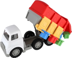 Οι πολύχρωμοι κάδοι απορριμμάτων και οι πλαϊνές πορτούλες επιτρέπουν ρεαλιστικό παιχνίδι ταξινόμησης απορριμμάτων. Τα παιδιά μαθαίνουν τις βασικές αρχές της οικολογίας με παιχνιδιάρικο και παραστατικό τρόπο.