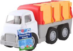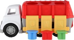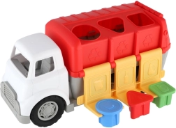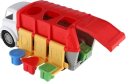 Αυτό το πολύχρωμο απορριμματοφόρο θα ενθουσιάσει τους μικρούς φίλους της τακτοποίησης και της ανακύκλωσης. Το επάνω μέρος λειτουργεί ως κουμπώστρα σχημάτων με ανοίγματα όπου τα παιδιά ταιριάζουν τα σωστά κομμάτια και έτσι μαθαίνουν να αναγνωρίζουν σχήματα και χρώματα. Οι πλευρικές ανοιγόμενες πορτούλες και οι αποσπώμενοι κάδοι επιτρέπουν διασκεδαστική μίμηση της συλλογής απορριμμάτων.