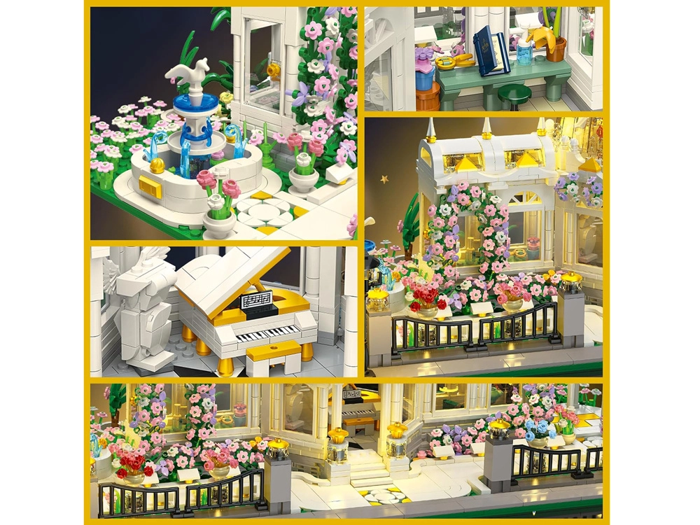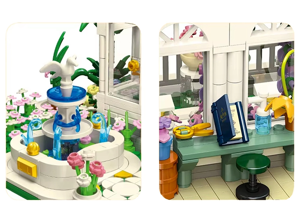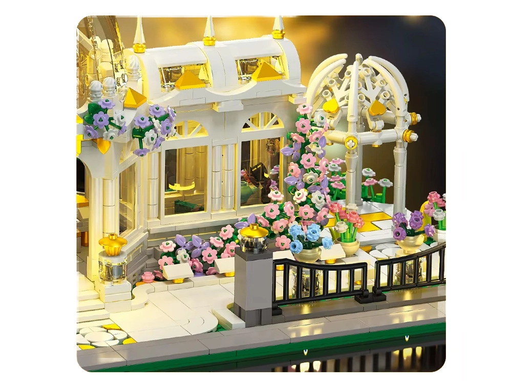 Το μοντέλο θα ενθουσιάσει απαιτητικούς δημιουργούς: θα βρείτε κομψούς κίονες και κιγκλιδώματα με χρυσές πινελιές, ρεαλιστικά μονοπάτια, κινούμενες πόρτες και πληθώρα αξεσουάρ – από τραπέζι με βιβλίο και ψαλίδι έως φορτεπιάνο και μικρές διακοσμήσεις. Την βραδινή ατμόσφαιρα ολοκληρώνει ο LED φωτισμός, που φωτίζει τη θόλο και τα παράθυρα, δημιουργώντας το εφέ μιας χειμερινής κηποθήκης.