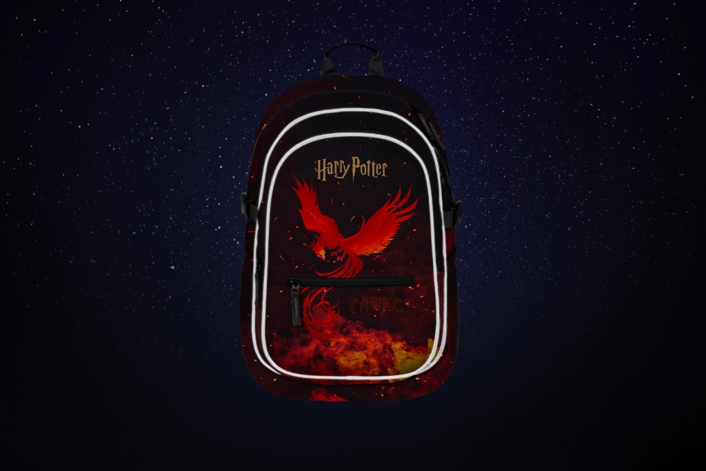 Στυλάτο σχολικό σετ για τους θαυμαστές του Harry Potter με θέμα τον Φοίνικα, περιλαμβάνει ελαφρύ και ευρύχωρο σακίδιο Core, πρακτική κασετίνα με φερμουάρ και πουγκί για παντόφλες ή αθλητικά. Το σακίδιο προσφέρει ανατομικά διαμορφωμένη πλάτη, ενισχυμένη θήκη για laptop 15", ανακλαστικά στοιχεία και ανθεκτικά φερμουάρ YKK. Όλο το σετ είναι φτιαγμένο από ανακυκλωμένα, αδιάβροχα υλικά – ιδανική επιλογή από την 3η τάξη Δημοτικού και άνω.