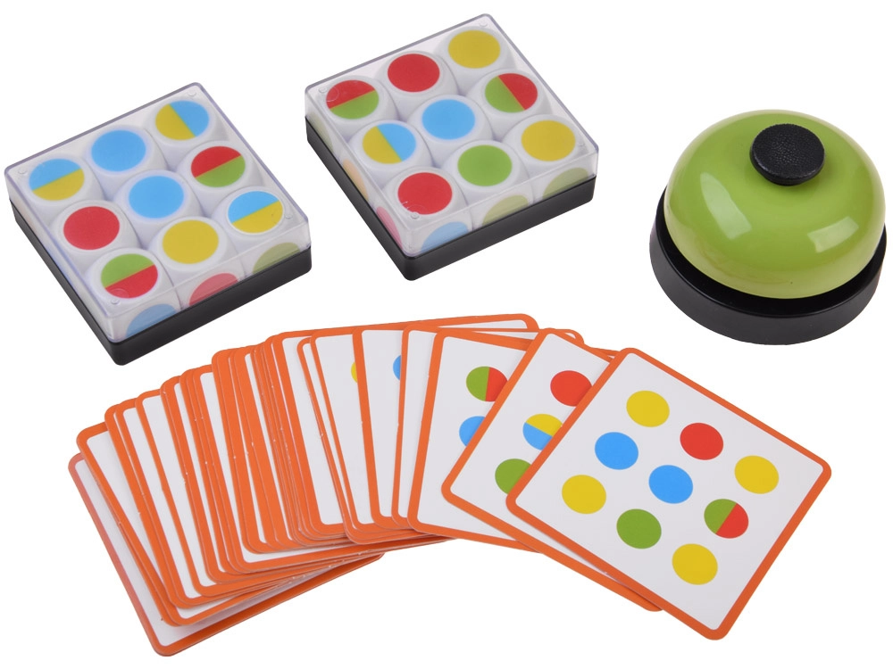 Διασκεδαστικό και γρήγορο οικογενειακό παιχνίδι, όπου μετράνε η παρατηρητικότητα, η συγκέντρωση και η γρήγορη σκέψη. Στόχος των παικτών είναι να τοποθετήσουν όσο πιο γρήγορα γίνεται το χρωματιστό μοτίβο σύμφωνα με την κάρτα και να πατήσουν το κουδουνάκι πριν από τον αντίπαλο. Εξαιρετική επιλογή για εκπαίδευση συντονισμού ματιού–χεριού και για συναρπαστικό ανταγωνισμό γεμάτο γέλιο.