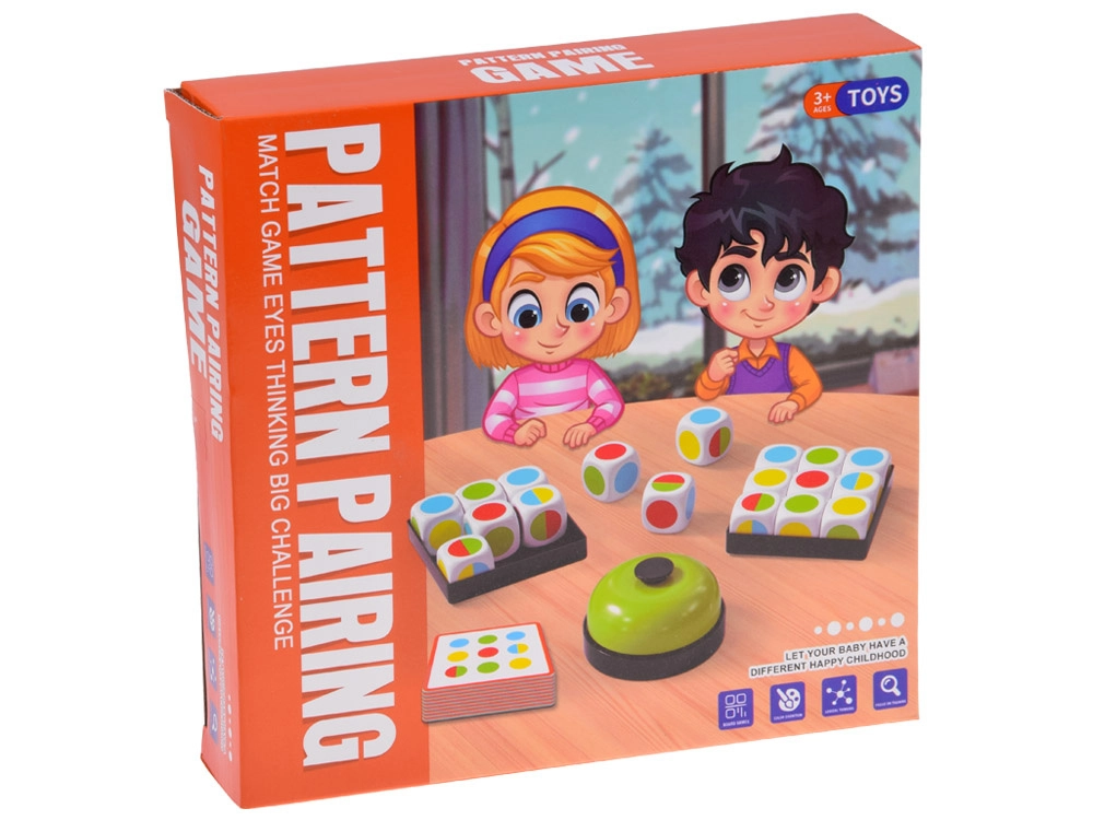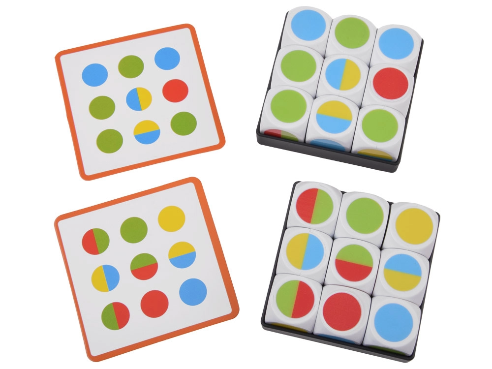 Αυτό το παιχνίδι παρατηρητικότητας προσφέρει δυναμική διασκέδαση για δύο παίκτες. Γυρίστε μια κάρτα με μοτίβο και γίνετε ο πρώτος που θα συνθέσει τον σωστό συνδυασμό κύβων μέσα στη δική του κλειστή βάση. Μόλις τελειώσετε, χτυπήστε γρήγορα το κουδουνάκι και κερδίστε την κάρτα. Νικητής είναι όποιος συγκεντρώσει τις περισσότερες κάρτες.