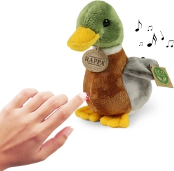 Αυτή η λούτρινη αγριόπαπια έχει σχεδιαστεί με έμφαση στη λεπτομέρεια – χάρη στη χειροποίητη κατασκευή φαίνεται ζωντανή και θα γίνει αγαπημένος σύντροφος τόσο για το κρεβατάκι όσο και για το παιχνίδι. Με το πάτημα της κοιλίτσας ακούγονται αυθεντικοί ήχοι πάπιας, που διεγείρουν τις αισθήσεις και προσφέρουν ακόμα μεγαλύτερη χαρά στο παιχνίδι.
