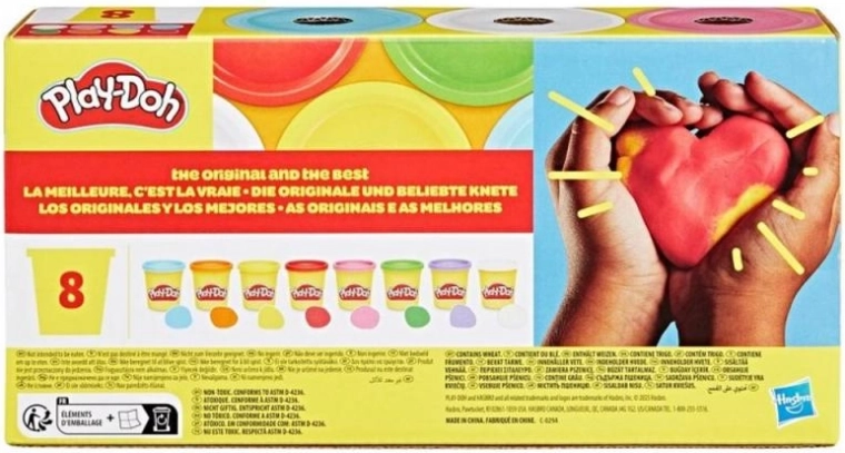Κάθε πακέτο περιέχει συνολικά 680 g πλαστελίνης, χωρισμένα σε 8 πρακτικά κεσεδάκια που βοηθούν να διατηρείται το υλικό φρέσκο για περισσότερο. Στη συλλογή υπάρχουν 2 χρωματικοί τύποι και το πακέτο διατίθεται ως assort – τυχαίος συνδυασμός, επομένως ο συγκεκριμένος συνδυασμός χρωμάτων δεν μπορεί να επιλεγεί εκ των προτέρων.