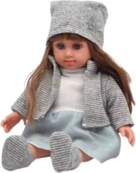 Το στιλάτο γκρι σετ (φόρεμα, ζακετάκι, σκουφάκι, παπουτσάκια) χαρίζει στην κούκλα κομψή εμφάνιση, ενώ παραμένει ζεστή και χαριτωμένη. Χάρη στην όμορφη συσκευασία, η κούκλα είναι έτοιμη ως τέλειο δώρο για παιδιά από 18 μηνών.
