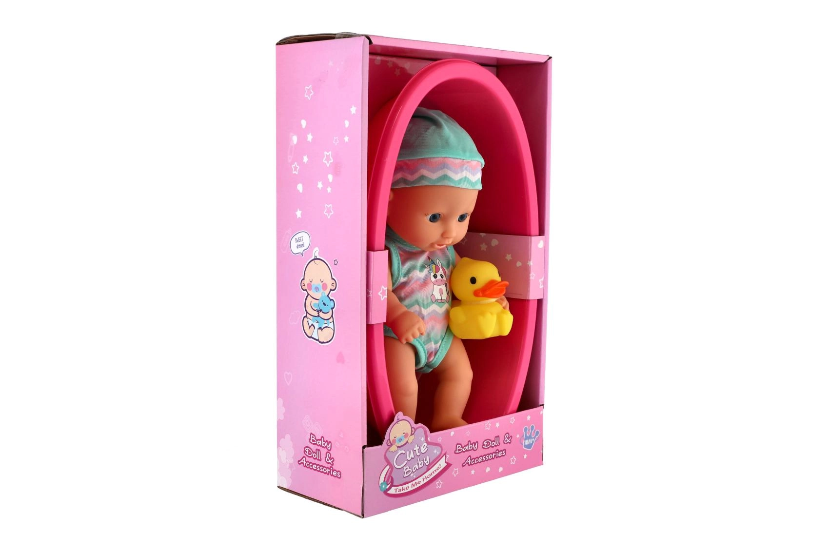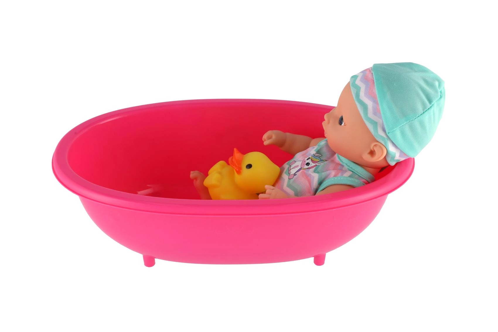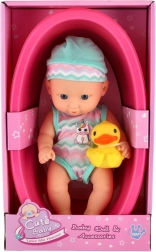 Αυτή η γλυκιά κουκλίτσα είναι έτοιμη για κάθε περιπέτεια στο μπάνιο. Τοποθετημένη σε ελαφριά πλαστική μπανιέρα με κίτρινο παπάκι, ενθαρρύνει τα παιδιά σε ευφάνταστο παιχνίδι φροντίδας μωρού, εκμάθηση ρουτινών και ανάπτυξη κοινωνικών δεξιοτήτων.