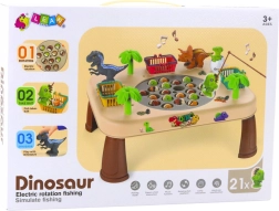 Διασκεδαστικό τραπέζι για ψάρεμα δεινοσαύρων που μετατρέπει το παιδικό δωμάτιο σε προϊστορική περιπέτεια. Τα παιδιά, με τη βοήθεια του καλαμιού, πιάνουν τις κινούμενες φιγούρες πάνω στην περιστρεφόμενη επιφάνεια, εξασκούν τις δεξιότητες συντονισμού και απολαμβάνουν φωτεινά και ηχητικά εφέ. Η ανθεκτική κατασκευή, ο πολύχρωμος σχεδιασμός και η δυνατότητα ταυτόχρονου παιχνιδιού από πολλά παιδιά εξασφαλίζουν ώρες χαρούμενης διασκέδασης.