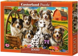 Απολαύστε χαλάρωση συναρμολογώντας ένα ποιοτικό παζλ με θέμα χαρούμενα σκυλιά στην εξοχή. Περιλαμβάνει 1000 κομμάτια, προσφέρει καθαρές και έντονες αποχρώσεις και όταν ολοκληρωθεί έχει διαστάσεις περίπου 68 × 47 cm.