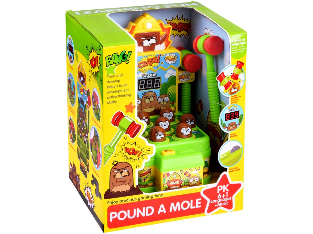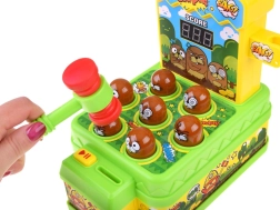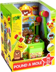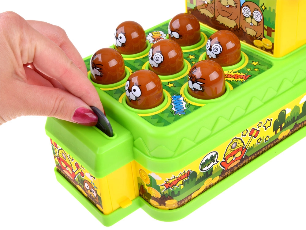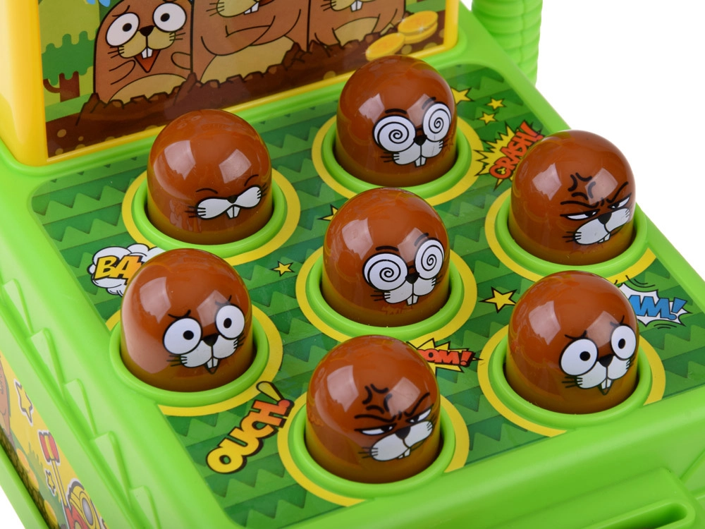 Ανακαλύψτε οικογενειακή διασκέδαση που σε κερδίζει από το πρώτο χτύπημα. Στο ταμπλό ανάβουν τυχαία 7 λαγούμια – ο στόχος σας είναι να τα χτυπήσετε όσο πιο γρήγορα γίνεται με το μαλακό λαστιχένιο σφυράκι μόνο όταν είναι φωτισμένα. Κάθε επιτυχία προσθέτει πόντους, που φαίνονται στην ευανάγνωστη οθόνη. Το παιχνίδι αναπτύσσει λεπτή κινητικότητα, ικανότητες συντονισμού και ταχύτητα αντίδρασης.