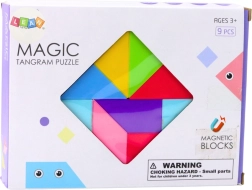 Ανακαλύψτε δημιουργική διασκέδαση με τα μαγνητικά τουβλάκια τάγκραμ! Το σετ περιλαμβάνει 9 πολύχρωμα κομμάτια με ισχυρούς μαγνήτες που κρατούν το σχήμα και συναρμολογούνται εύκολα. Τα παιδιά δημιουργούν αμέτρητα μοτίβα και φιγούρες, αναπτύσσοντας την δημιουργικότητα, τη λογική σκέψη και τη λεπτή κινητικότητα. Περιλαμβάνονται οδηγίες με παραδείγματα και αυτοκόλλητα με φατσούλες για ακόμη πιο διασκεδαστικό παιχνίδι.