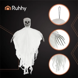 Δημιουργήστε ένα «στοιχειωμένο σπίτι» στο λεπτό. Αυτός ο κρεμαστός λευκός σκελετός RUHHY ξεχωρίζει για την ρεαλιστική εμφάνιση και την ελαφριά κατασκευή, ώστε να τον κρεμάσετε εύκολα όπου χρειαστεί. Το σκισμένο ύφασμα κινείται και με το παραμικρό ρεύμα αέρα, χαρίζοντας στη διακόσμηση ένα παγωμένο, ζωντανό εφέ.