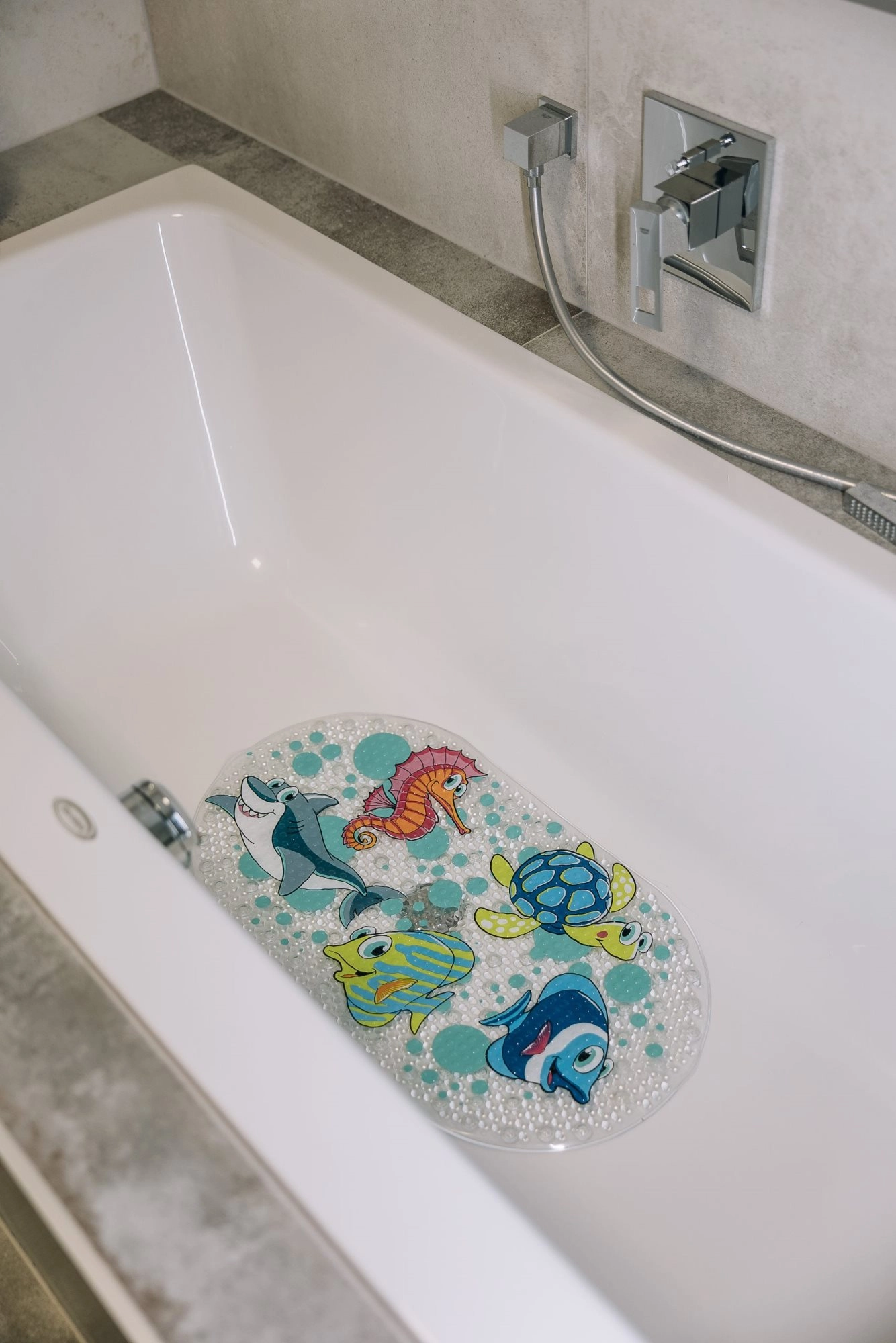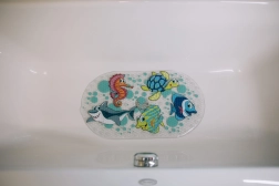 Η εγκατάσταση είναι εύκολη: για τέλεια πρόσφυση γεμίστε τη μπανιέρα με νερό, τοποθετήστε το πατάκι στον πάτο και πιέστε ομοιόμορφα. Χάρη στις καθολικές διαστάσεις 69 × 39 cm ταιριάζει στις περισσότερες μπανιέρες και παιδικές μπανιέρες.