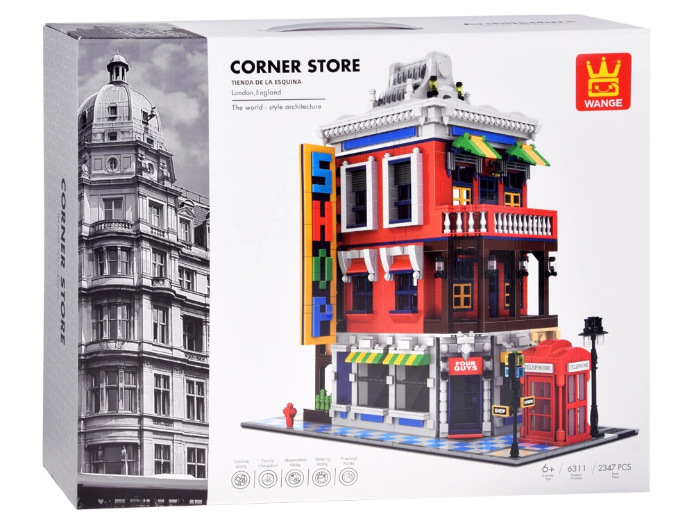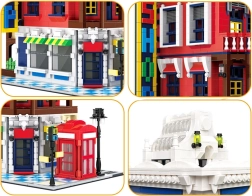 Το μοντέλο είναι γεμάτο εμβληματικά αξεσουάρ: κόκκινος τηλεφωνικός θάλαμος – σύμβολο του Ηνωμένου Βασιλείου, οδός με πινακίδα για ρεαλισμό στη σκηνή, διακοσμητική κρεμαστή επιγραφή και περίτεχνη στέγη που τονίζει το αρχιτεκτονικό στυλ του κτηρίου.