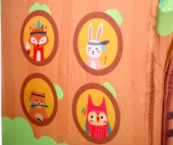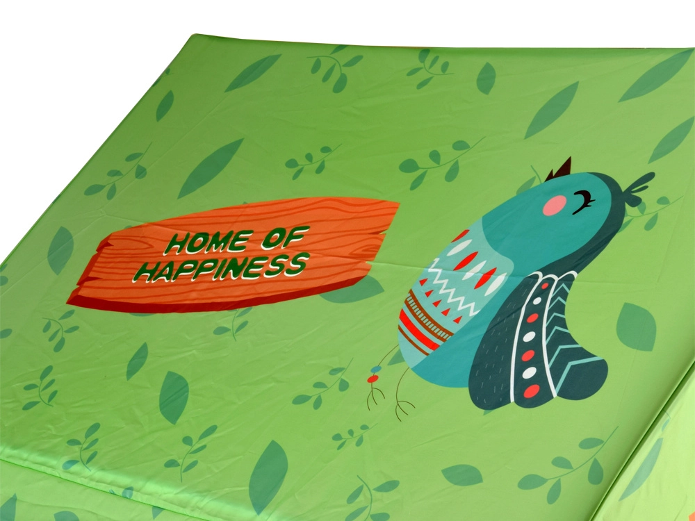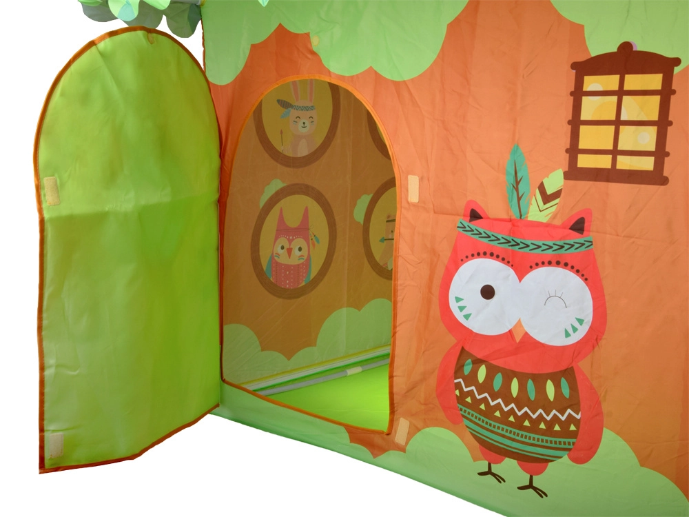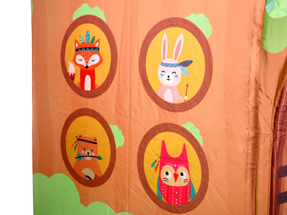 Η σκηνή-σπιτάκι Δασικοί φίλοι θα μαγέψει τα παιδιά με τα χαρούμενα γραφικά με κουκουβάγια και πουλάκια και θα δημιουργήσει ένα ζεστό μέρος για παιχνίδι, διάβασμα και ξεκούραση. Χάρη στο μικρό βάρος και τη γρήγορη συναρμολόγηση, ταιριάζει στο παιδικό δωμάτιο αλλά και στον κήπο. Το άνοιγμα εισόδου και τα παράθυρα εξασφαλίζουν καλή πρόσβαση και κυκλοφορία αέρα.