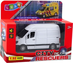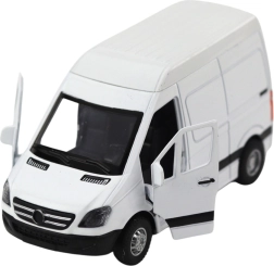 Ρεαλιστικό μεταλλικό φορτηγάκι κλίμακας 1:32 που θα ενθουσιάσει μικρούς και μεγάλους φίλους των μοντέλων. Προσφέρει μηχανισμό pull back, ανοιγόμενες πόρτες και φωτεινά και ηχητικά εφέ. Η ποιοτική συνδυασμένη κατασκευή από μέταλλο και πλαστικό εξασφαλίζει αντοχή, ενώ ο λευκός μινιμαλιστικός σχεδιασμός ταιριάζει σε κάθε συλλογή μοντέλων.