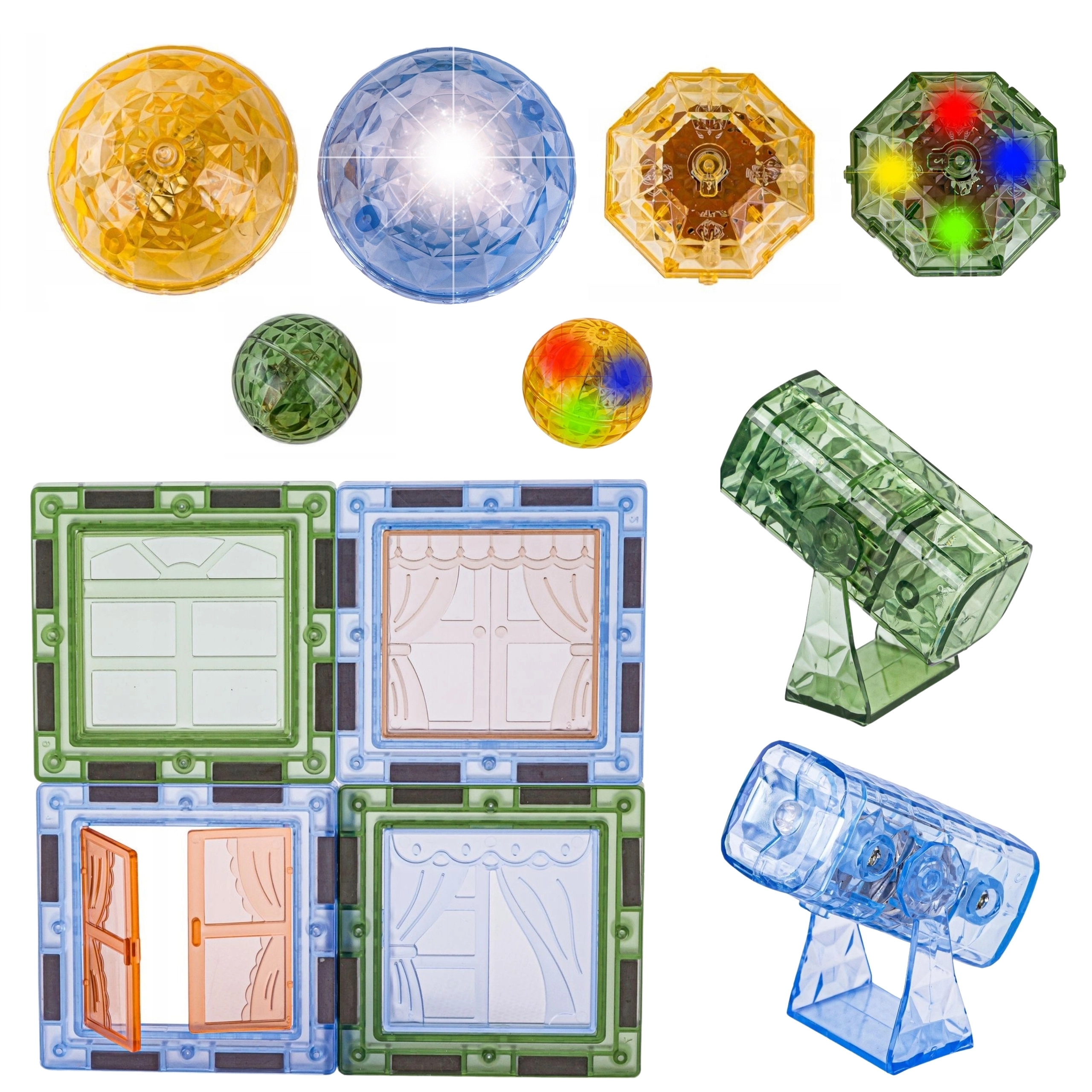 - 124 κομμάτια με ποικιλία σχημάτων (τετράγωνα, τρίγωνα, παράθυρα, στέγες)