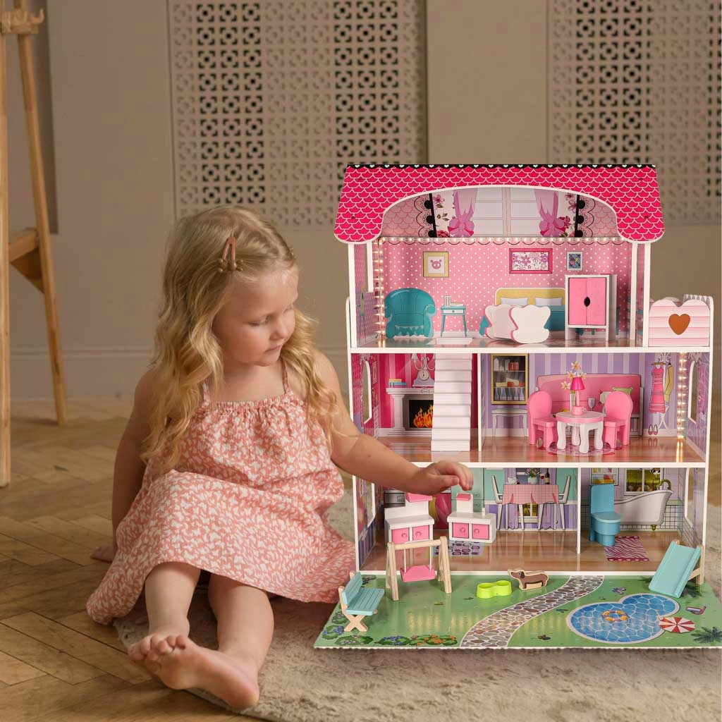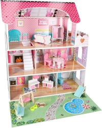 Ιδανικό ως δώρο για παιδιά που αγαπούν τη φαντασία, τα παιχνίδια ρόλων και τη διαρρύθμιση επίπλων. Ο ροζ-λευκός σχεδιασμός με διακριτικές λεπτομέρειες ταιριάζει υπέροχα σε παιδικό δωμάτιο και ενισχύει τη λεπτή κινητικότητα και τη φαντασία.