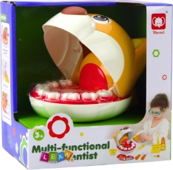 Ο πλούσιος εξοπλισμός περιλαμβάνει οδοντόβουρτσα, τροχό, λαβίδες, μπολ, γουδοχέρι, μπουκαλάκια με «φάρμακα», βάση, θεματικές πινακίδες με σοκολάτα και καραμέλα, καθώς και 8 αφαιρούμενα δόντια. Χάρη στην ασφαλή κατασκευή και τις στρογγυλεμένες άκρες, το παιχνίδι είναι κατάλληλο για παιδιά και καθαρίζεται εύκολα.