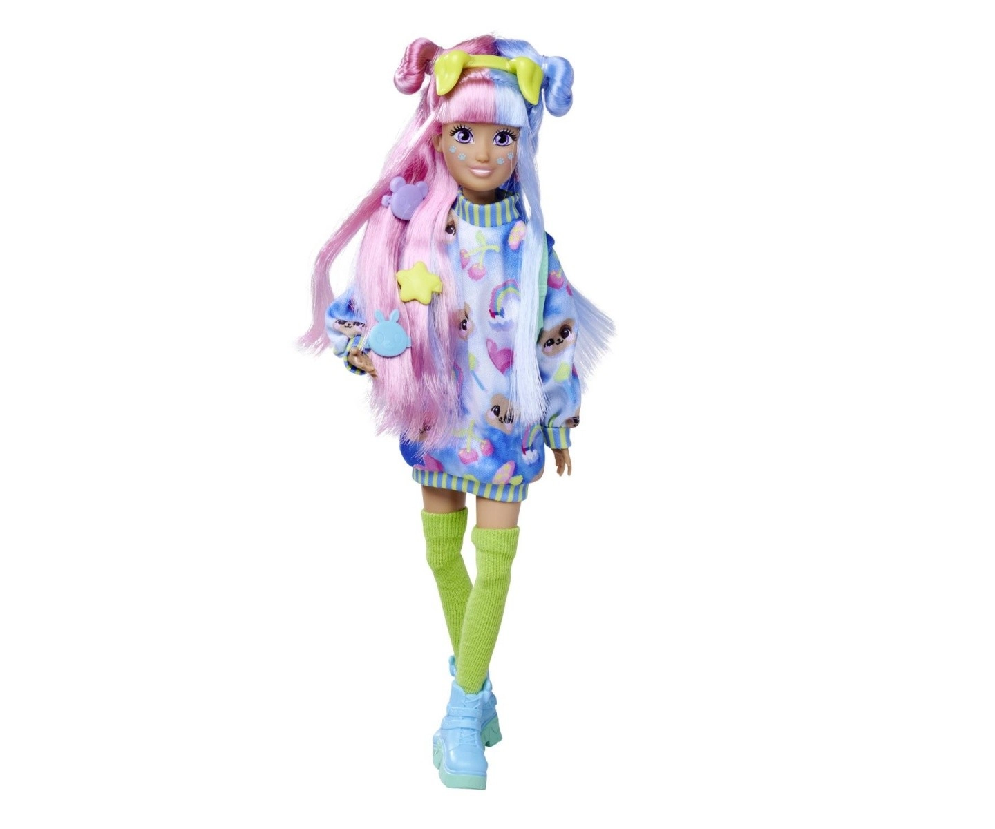 Χτενίστε, στερεώστε κλιπ και δημιουργήστε πρωτότυπα χτενίσματα. Οι μακριές, πολύχρωμες τούφες είναι ιδανικές για δημιουργικό παιχνίδι.
