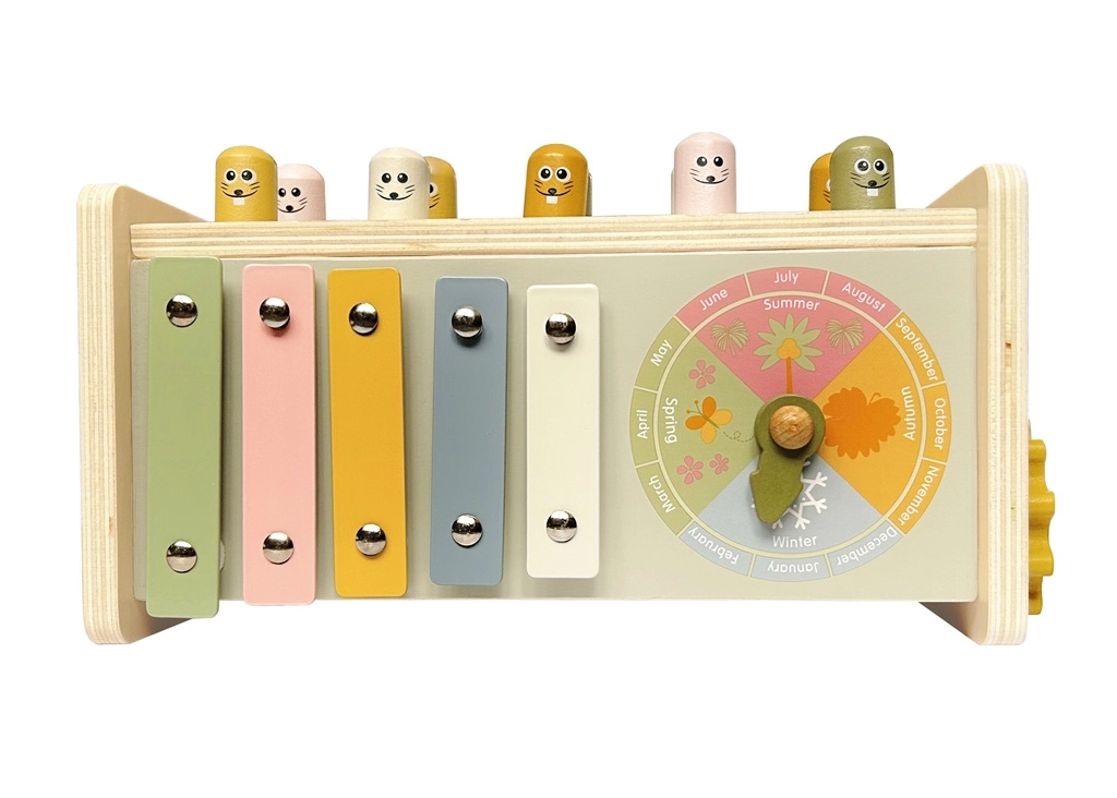 Οι χαρούμενες φιγούρες και το ξύλινο σφυράκι παρακινούν τα παιδιά να εξασκούν τον συντονισμό, τη δύναμη χτυπήματος και τον ρυθμό. Η ανθεκτική κατασκευή αντέχει στο καθημερινό παιχνίδι.
