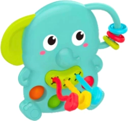 Χαριτωμένη αισθητηριακή κουδουνίστρα σε σχήμα ελέφαντα που χαροποιεί τα μωρά από τους πρώτους μήνες. Χάρη στις ποικίλες υφές, τα κινητά στοιχεία και τις χρωματιστές κορδονέτες για τράβηγμα υποστηρίζει τη λεπτή κινητικότητα, τον συντονισμό χεριού–ματιού και τη φυσική περιέργεια του παιδιού. Κατασκευασμένη από ασφαλές, ποιοτικό πλαστικό για καθημερινό παιχνίδι.