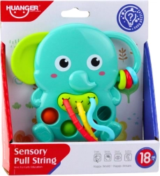 - Αισθητηριακή κουδουνίστρα ελέφαντας, κινητές χαντρούλες και κρίκοι, χρωματιστές κορδονέτες για τράβηγμα