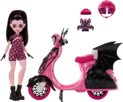 Ανακαλύψτε τον γοτθικό κόσμο του MONSTER HIGH με τη Draculaura και το εντυπωσιακό σκούτερ με νυχτερίδινα φτερά και λεπτομέρειες ιστών. Χάρη στα λειτουργικά στοιχεία όπως οι ελεύθερα περιστρεφόμενοι τροχοί και το στάντ, η βόλτα είναι σταθερή και διασκεδαστική. Στο πίσω καλάθι ταξιδεύει η μικρή νυχτερίδα Κόμης Υπέροχος, που έχει το δικό της κράνος – ασφάλεια και στυλ σε πρώτη προτεραιότητα.